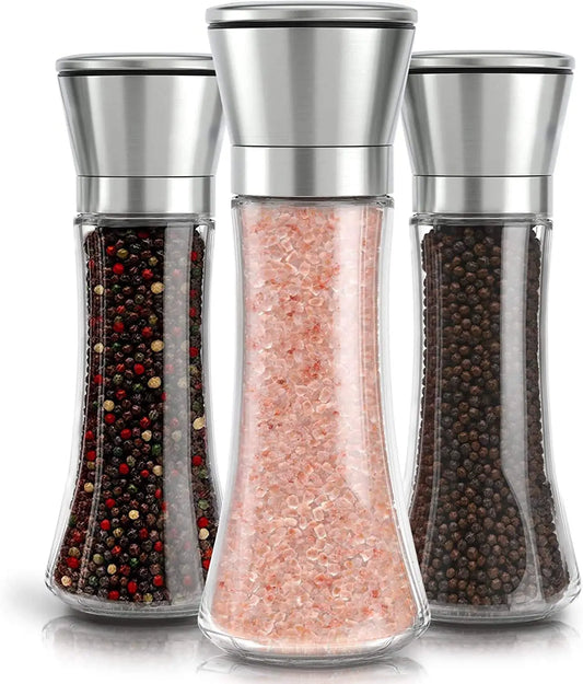 Gewürzmühle 2er Set mit einstellbarem Keramikmahlwerk - Pfeffermühle Edelstahl Pfeffermühle Pfeffermühle Salzmühle Pfeffermühle Salz Pfeffer Mühle