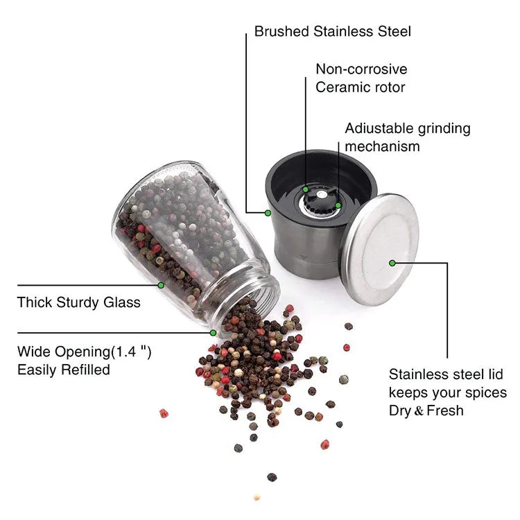 Gewürzmühle 2er Set mit einstellbarem Keramikmahlwerk - Pfeffermühle Edelstahl Pfeffermühle Pfeffermühle Salzmühle Pfeffermühle Salz Pfeffer Mühle